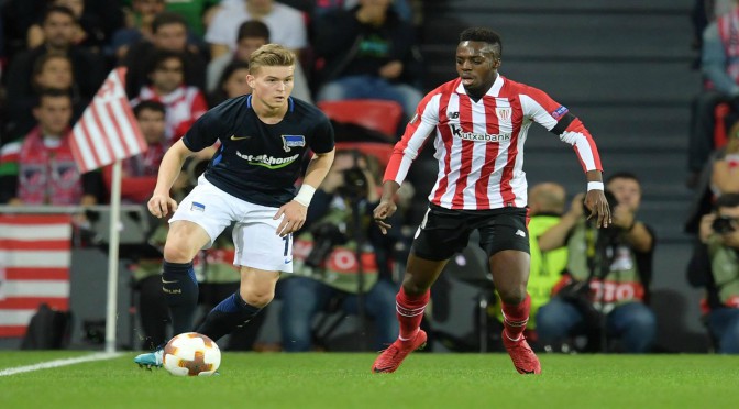 В двубой от група „J“ на турнира Лига Европа отборът на „Атлетик“ (Билбао) постигна много важна домакинска победа над тима на „Херта“ (Берлин), побеждавайки го с 3:2 на своя „Сан Мамес„. Победата за тима от Билбао не дойде лесно, тъй като заради доста слаба игра през първо полувреме испанците губеха на почивката с 1:2, но преобразени през второто полувреме, баските показаха съвсем друго лице и успяха да осъществят пълен обрат, стигайки до крайното 3:2 в своя полза. Гостите от Германия повеждаха на два пъти в резултата чрез Матю Леки и Дейви Зелке, които бяха точни в 26-ата и 36-ата минута, но след всяко едно от тези попадения за немците Ариц Адурис успяваше да върне своя тим обратно в двубоя благодарение на две категорични изяви от бялата точка в 35-ата и 66-ата минута. Успехът за тима от Билбао бе осигурен от Иняки Уилямс, който с победен гол в 83-ата минута хвърли домакинската публика в екстаз.