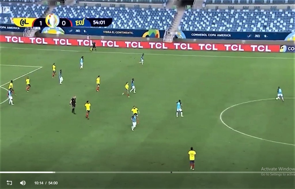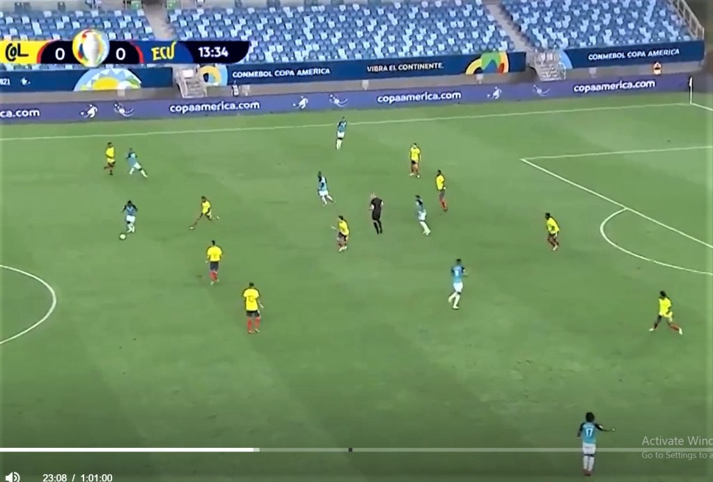 но въпреки споменатото предимство на няколко пъти преди достигането на тази 32-ра минута се забелязаха моменти на преса от страна на „Еквадор“, чрез която „Ла Три“ успяваха да държат колумбийците далеч от своята врата.