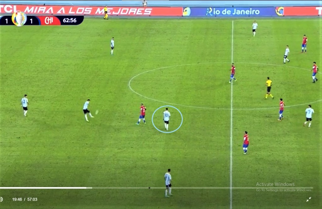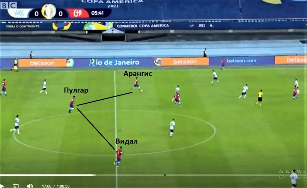Началните десет минути преминаха определено с превес в притежанието на топката в полза на „Чили“, докато аржентинците стартираха умишлено по-изчаквателно, като подредбата, която „гаучосите“ заемаха в моментите си без топка, бе ту във формация 4-4-2, ту в 4-5-1.