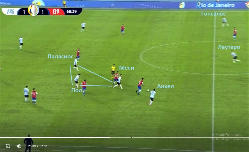 Въпреки това обаче първото опасно положение в срещата бе в полза на тима на Лионел Скалони и то бе регистрирано в 16-ата минута, когато Николас Гонсалес отправи силен удар по земя, който бе неутрализиран от Клаудио Браво. От последвалия корнер също се стигна до инфарктна ситуация за чилийците, тъй като удар с глава отново на Николас Гонсалес мина встрани от целта.