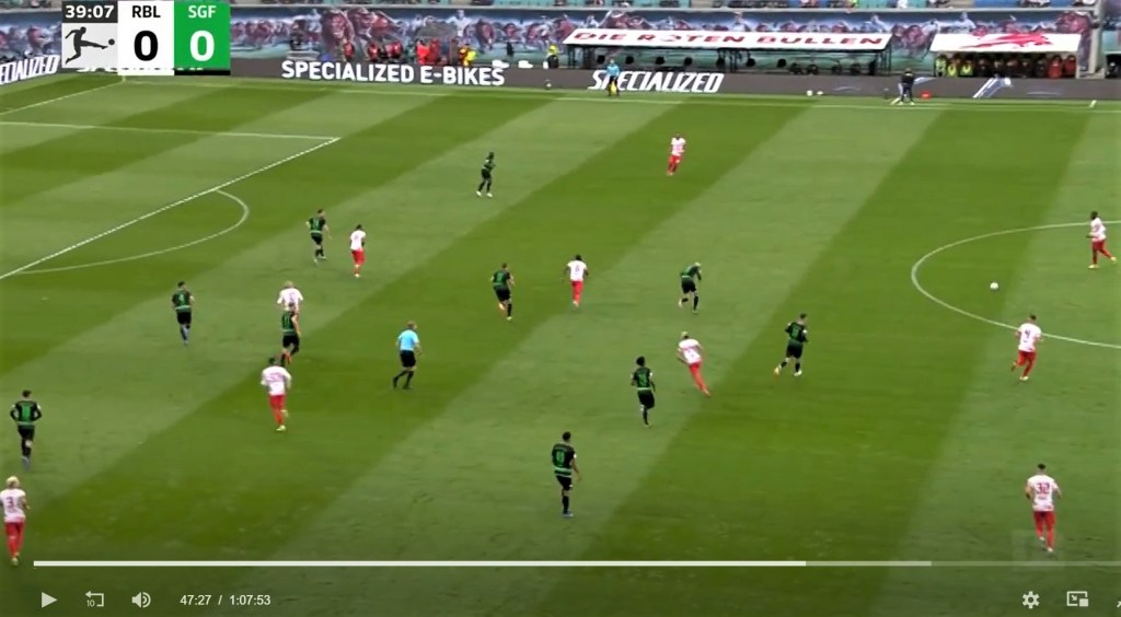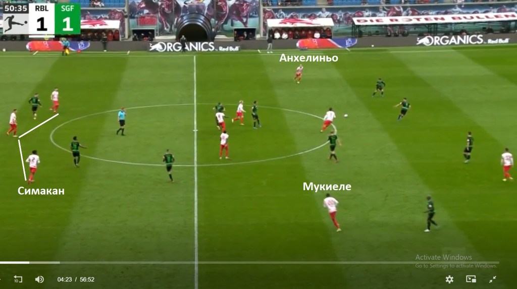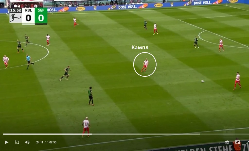Кевин Кампл, както винаги, бе двигателят в средата на терена за „Лайпциг“, позиционирайки се като единствен пред тримата в защита, за да поема топката от тях и да я разпределя в предни позиции. Но това е нещо, което Кампл прави, откакто пристигна в „Лайпциг“. Това е функцията, която изпълнява в състава.